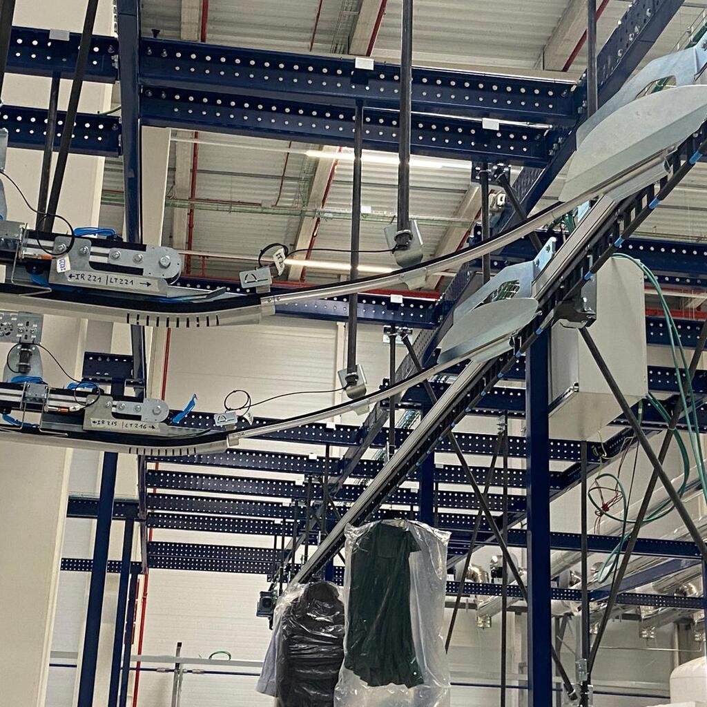 We specialize in designing transport chains for hanging garments, tailored to the specific needs of each client and sector. One of our main areas of expertise is the textile industry. Our solutions are also suitable for other industries that require efficient handling of hanging products, such as automotive, meat logistics, and light manufacturing.